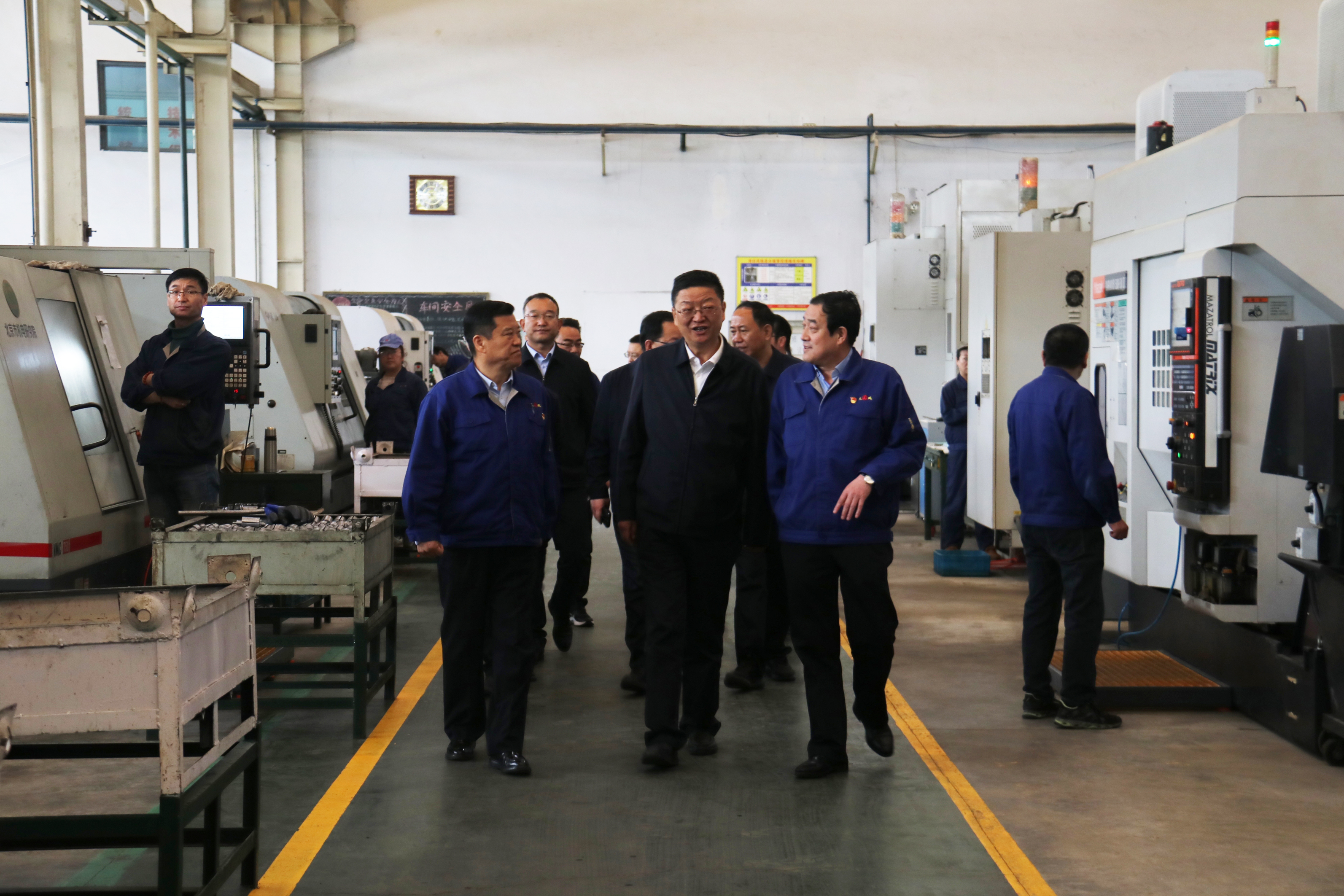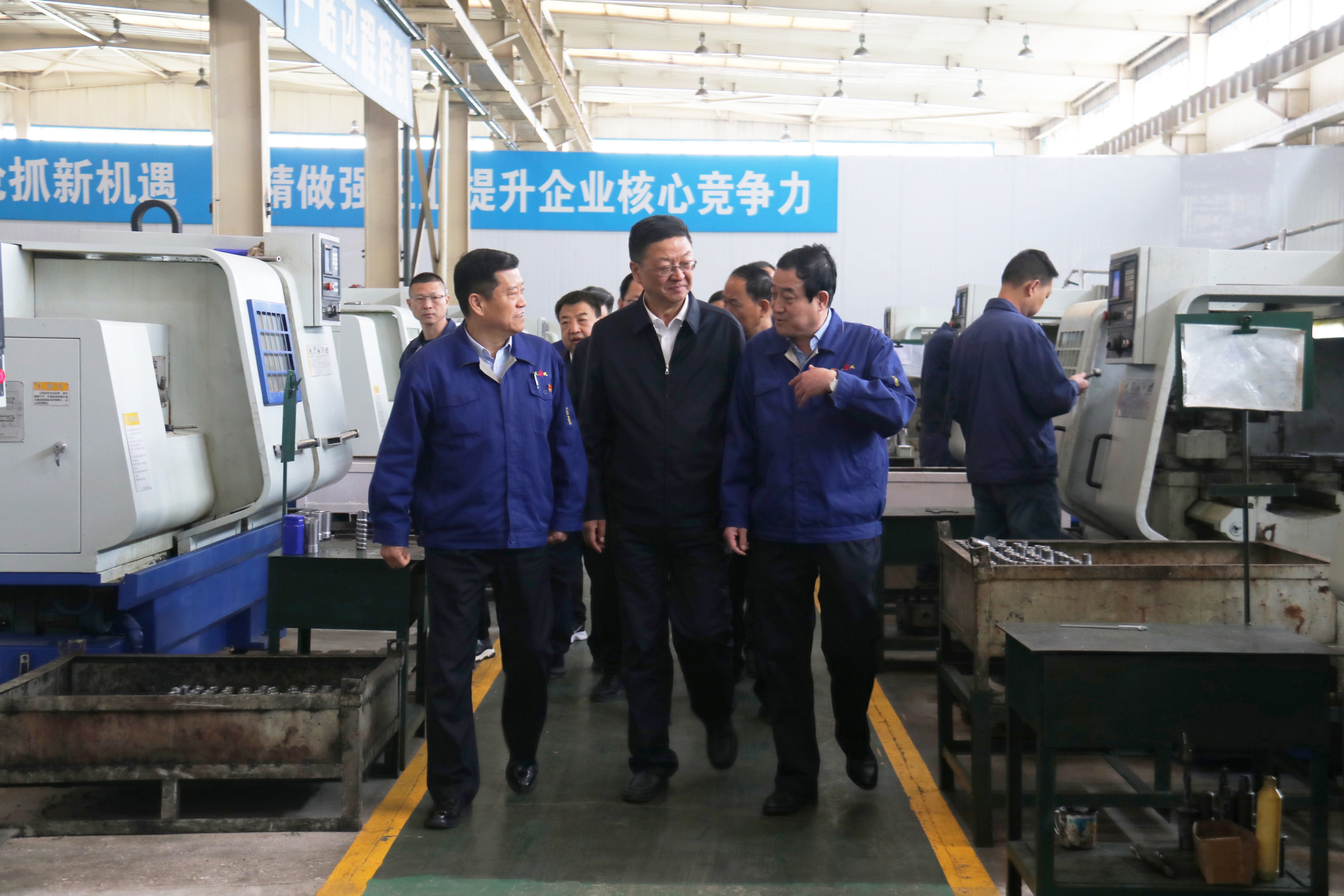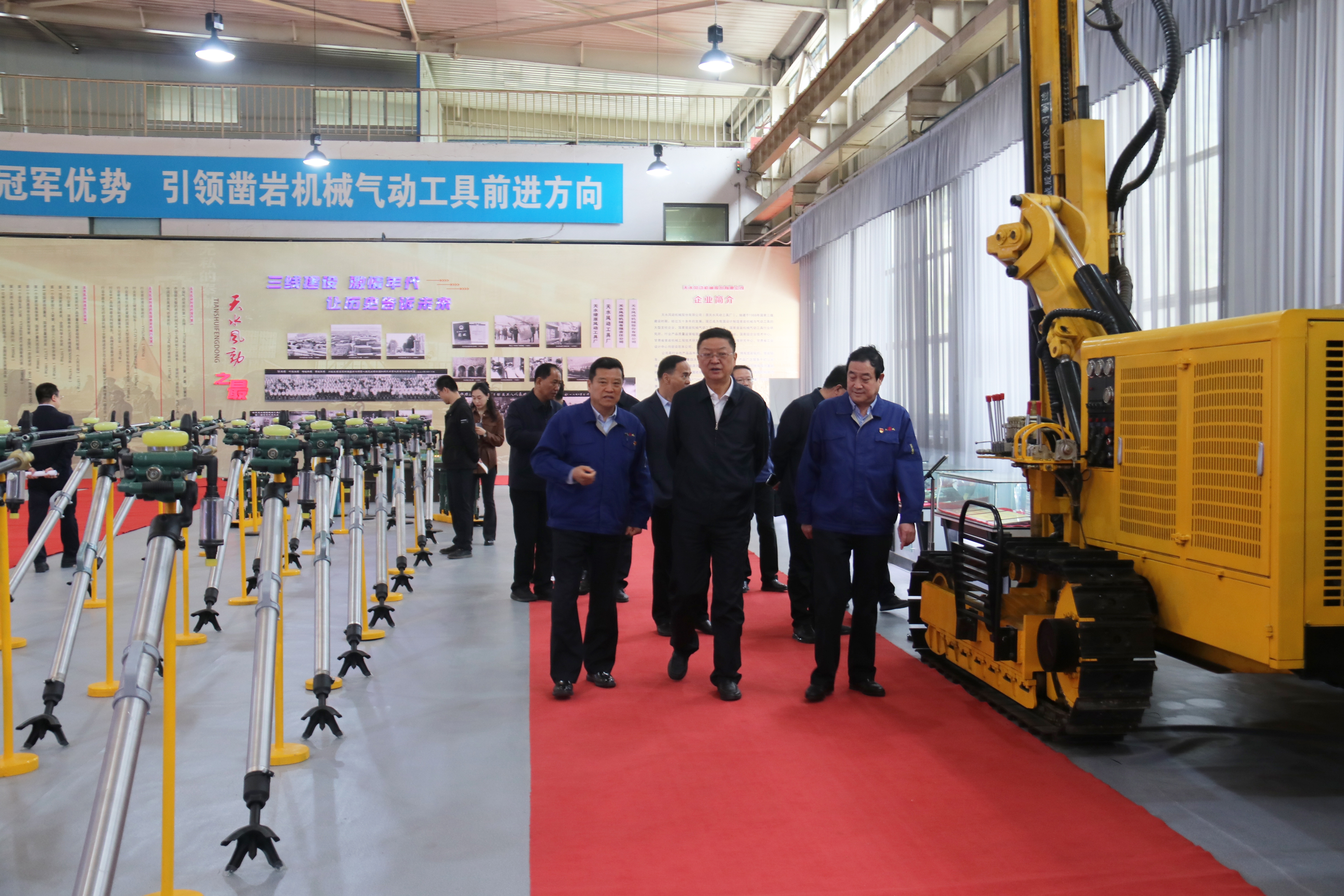馮文戈書(shū)記一行在公司領(lǐng)導陪同下參觀(guān)了公司展廳、走訪(fǎng)了液壓鑿巖機車(chē)間及正在全力建設中的精密鍛造生產(chǎn)線(xiàn)施工現場(chǎng),對公司歷史沿革和目前生產(chǎn)經(jīng)營(yíng)工作情況進(jìn)行了深入了解。